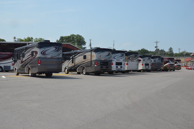 After a short drive today, we are at the Tiffin RV Park in Red Bay Alabama. I really shouldn't call it an RV park, it's more like a staging area for motor homes that are getting worked on or getting upgrades here at the factory.